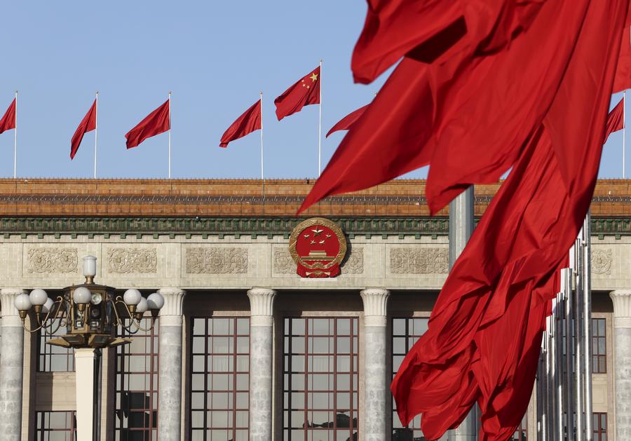 This photo taken on March 8, 2024 shows the Great Hall of the People ahead of the second plenary meeting of the second session of the 14th National People's Congress (NPC) in Beijing, capital of China. (Xinhua/Liu Xu)