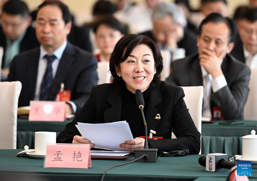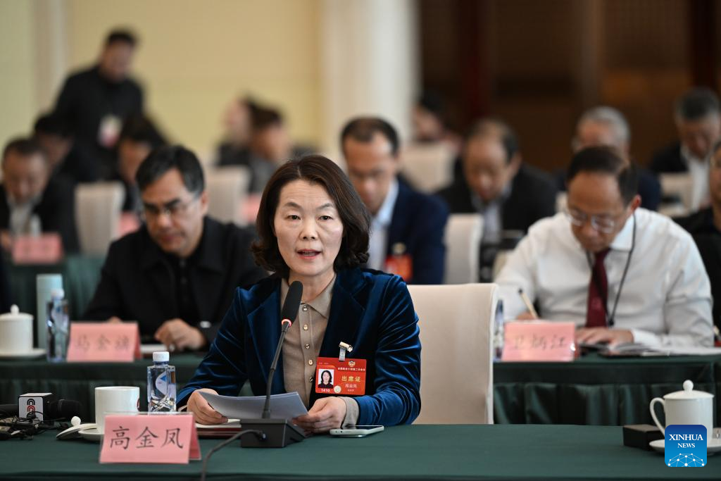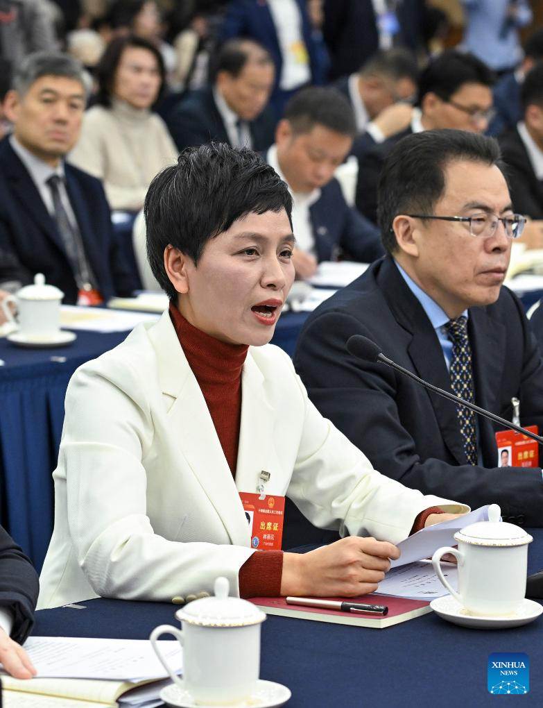 National political advisor Gong Jianmei speaks at a group meeting at the second session of the 14th National Committee of the Chinese People's Political Consultative Conference (CPPCC) in Beijing, capital of China, March 5, 2024. (Xinhua/Chen Yehua)