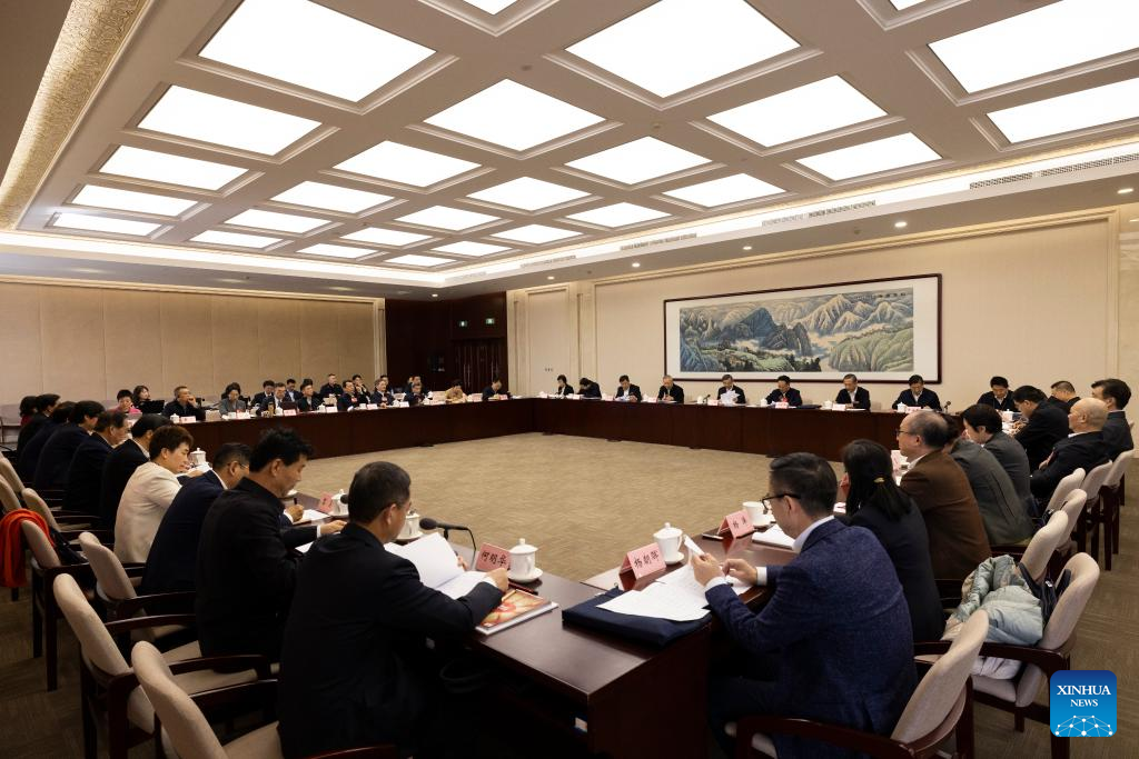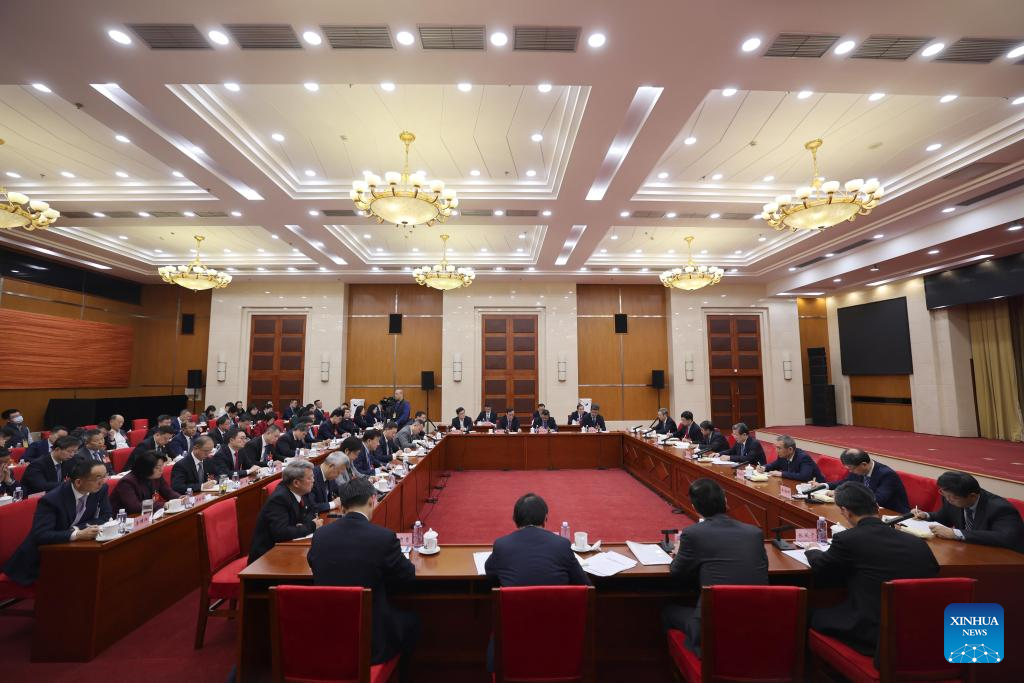 Political advisors from the group of personages without party affiliation attend a group consultation at the second session of the 14th National Committee of the Chinese People's Political Consultative Conference (CPPCC) in Beijing, capital of China, March 7, 2024. (Xinhua/Xing Guangli)