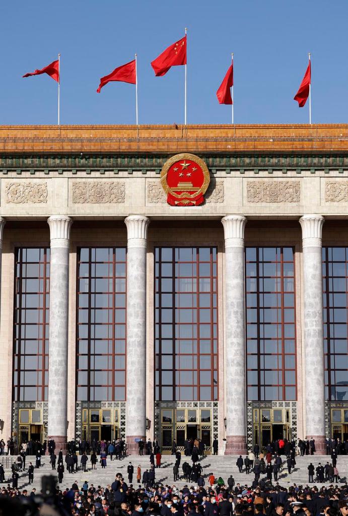 This photo taken on March 8, 2024 shows the Great Hall of the People ahead of the second plenary meeting of the second session of the 14th National People's Congress (NPC) in Beijing, capital of China. (Xinhua/Fei Maohua)