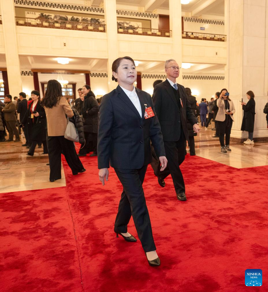 Liu Mingqun prepares to attend the opening meeting of the second session of the 14th National People's Congress (NPC) at the Great Hall of the People in Beijing, capital of China, March 5, 2024. (Xinhua/Cai Yang)