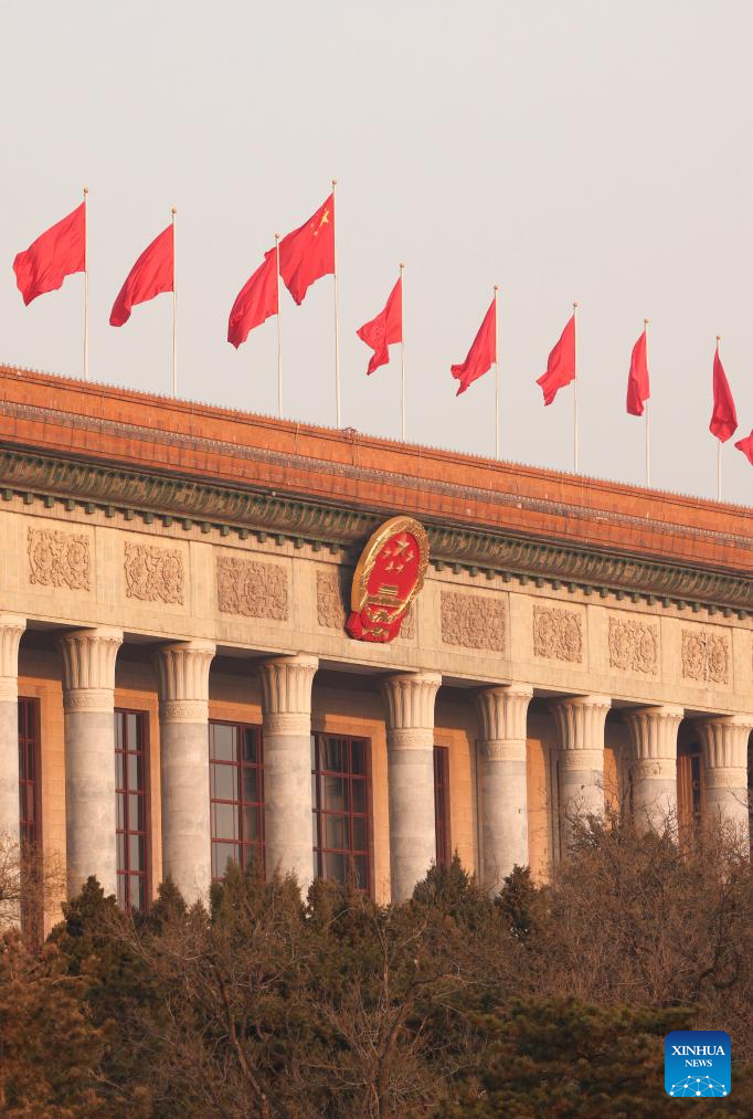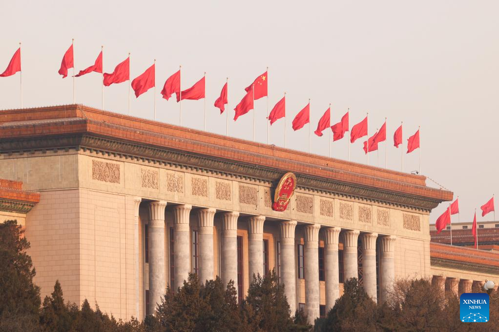 This photo taken on March 10, 2024 shows the Great Hall of the People ahead of the closing meeting of the second session of the 14th National Committee of the Chinese People's Political Consultative Conference (CPPCC) in Beijing, capital of China. (Xinhua/Xing Guangli)