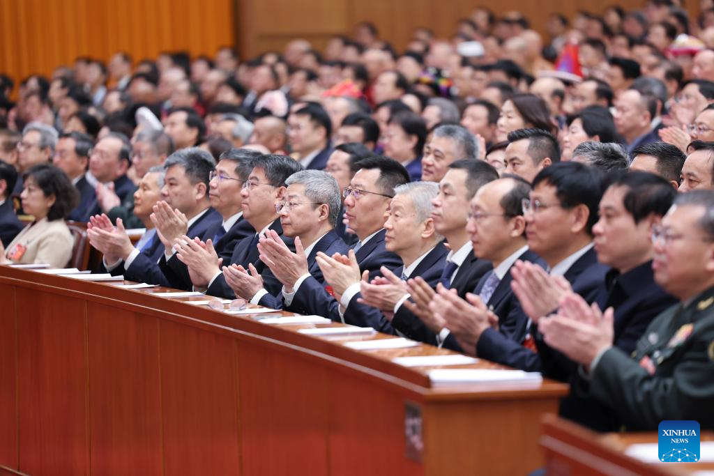 Members of the 14th National Committee of the Chinese People's Political Consultative Conference (CPPCC) attend the closing meeting of the second session of the 14th CPPCC National Committee at the Great Hall of the People in Beijing, capital of China, March 10, 2024. (Xinhua/Jin Liwang)