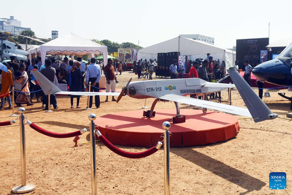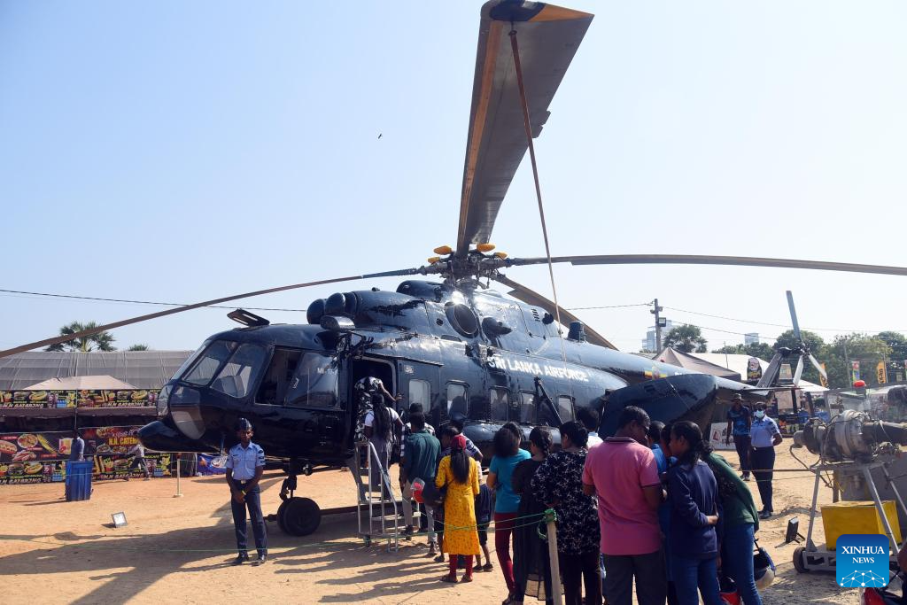 People visit the "Air Tattoo - 2024" technological and educational exhibition in Jaffna, Sri Lanka, on March 9, 2024. The exhibition is scheduled to run from March 6 to 10, in commemoration of the 73rd anniversary of the Sri Lanka Air Force. (Photo by Gayan Sameera/Xinhua)