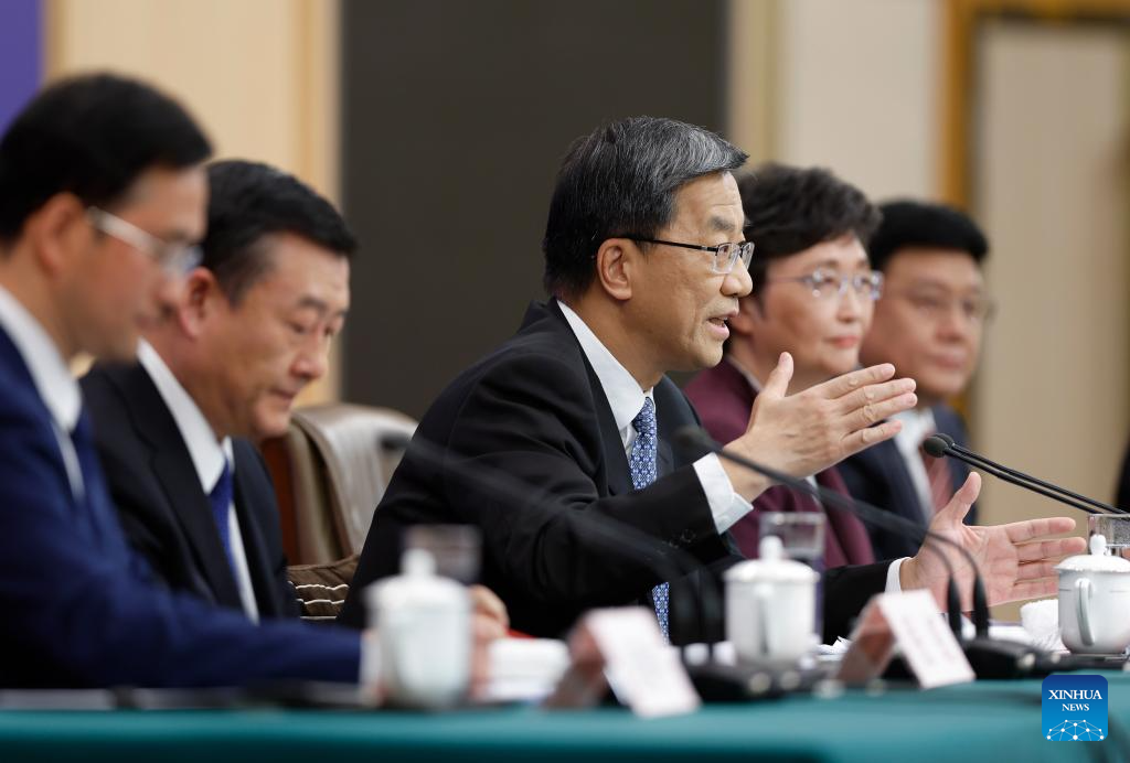 China's Chief of the National Disease Control and Prevention Administration Wang Hesheng speaks at a press conference on people's livelihood for the second session of the 14th National People's Congress (NPC) in Beijing, capital of China, March 9, 2024. China's Minister of Education Huai Jinpeng, Minister of Human Resources and Social Security Wang Xiaoping, and Minister of Housing and Urban-Rural Development Ni Hong also attended the press conference on Saturday. (Xinhua/Mu Yu)