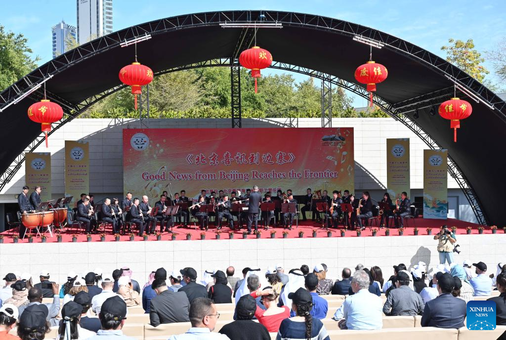 People enjoy the performance of a Chinese orchestra during the Chinese Culture and Food Festival at the Sheikh Jaber Al-Ahmad Cultural Centre in the Capital Governorate, Kuwait, on March 9, 2024. The Chinese Culture and Food Festival was held here on Saturday. (Photo by Asad/Xinhua)