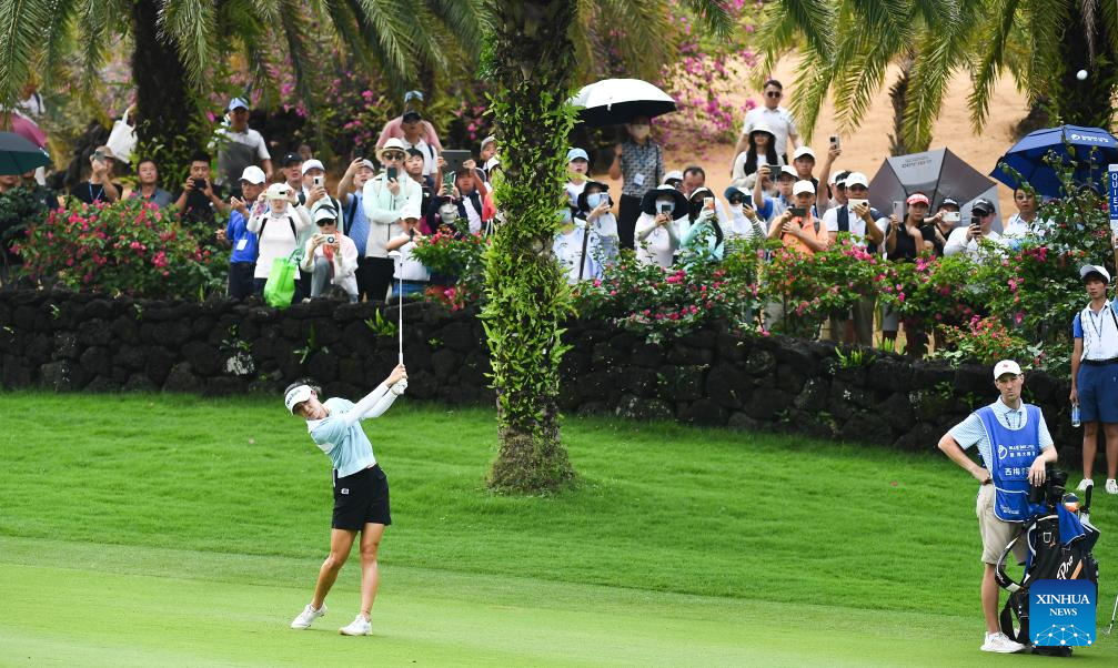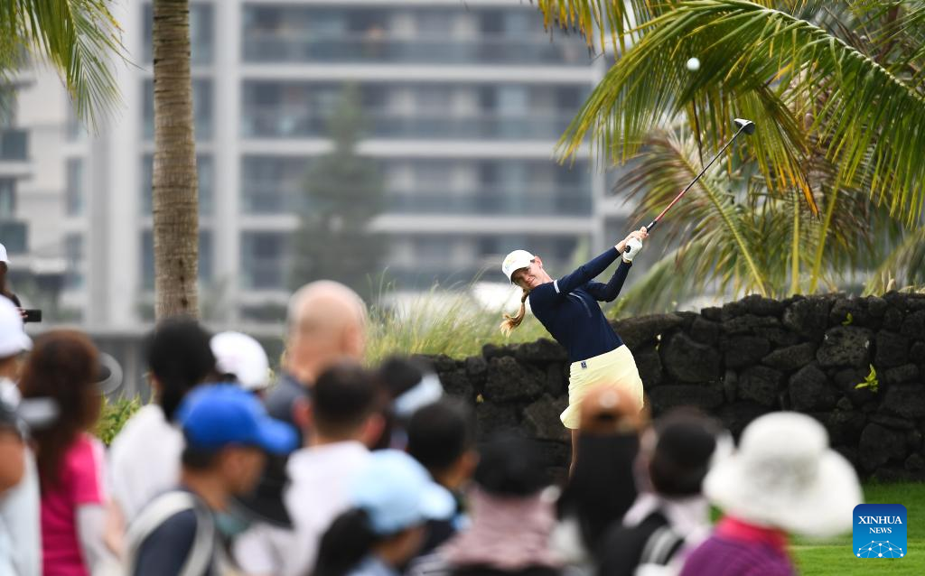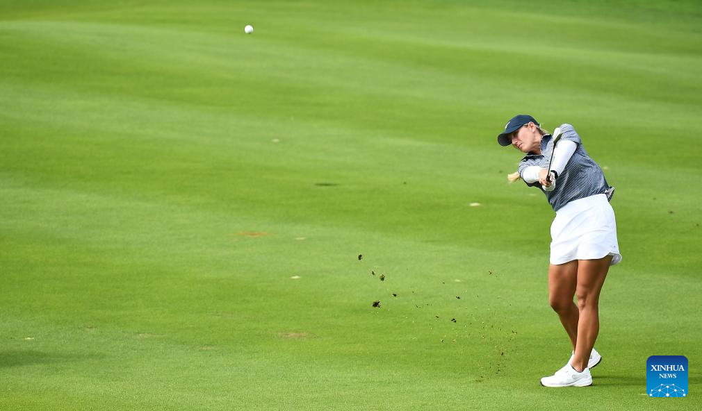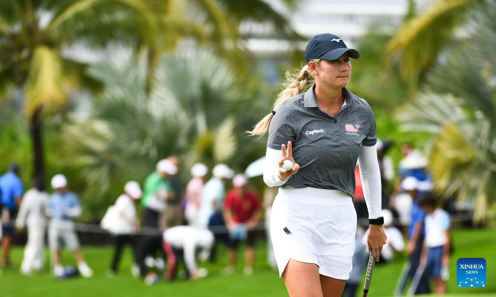Sarah Schmelzel of the United States plays a shot during the final round of the Blue Bay LPGA golf tournament in Lingshui, south China's Hainan Province, March 10, 2024. (Xinhua/Yang Guanyu)