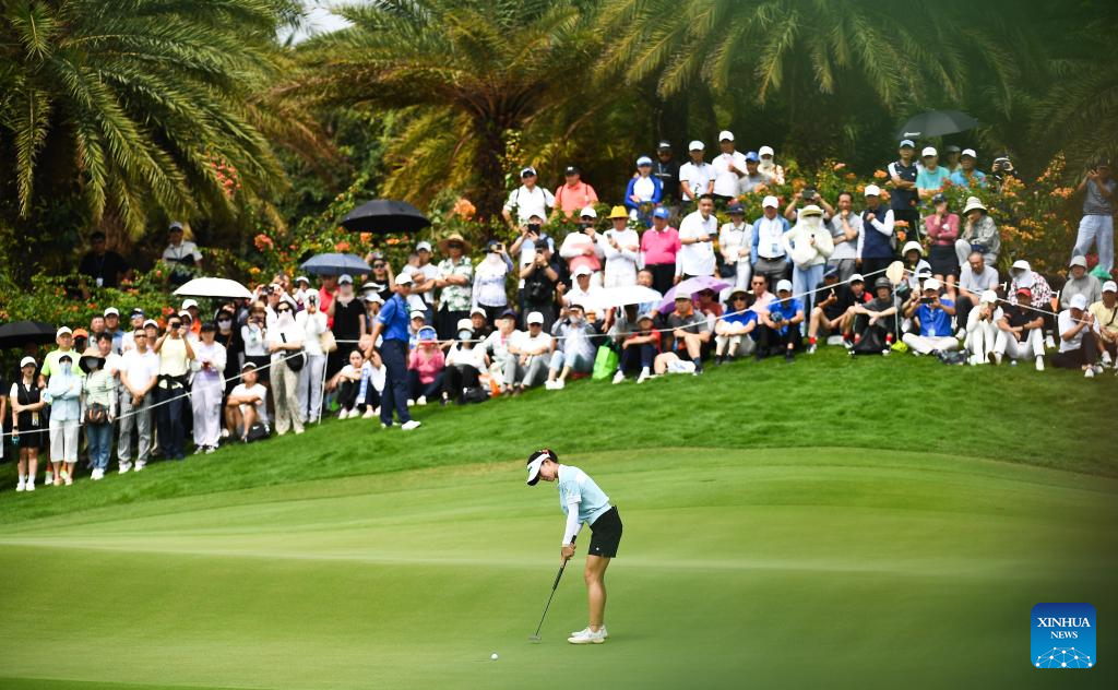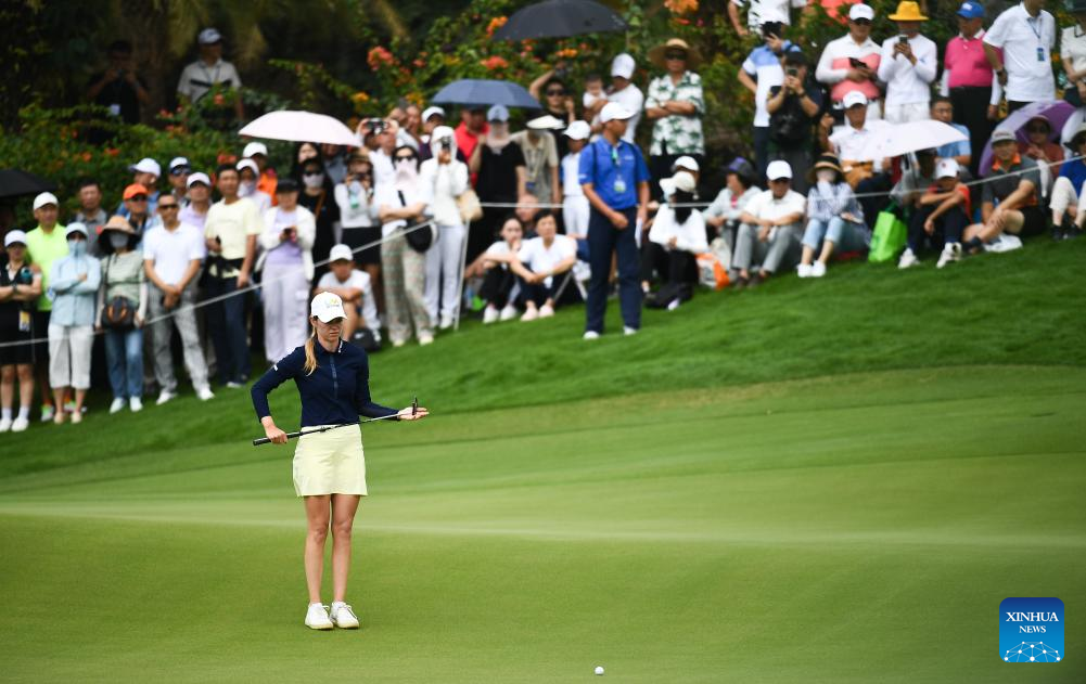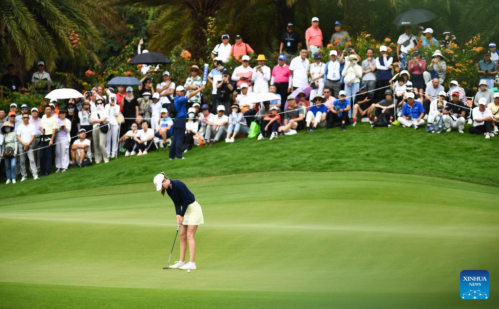 Sarah Schmelzel of the United States putts a shot during the final round of the Blue Bay LPGA golf tournament in Lingshui, south China's Hainan Province, March 10, 2024. (Xinhua/Yang Guanyu)