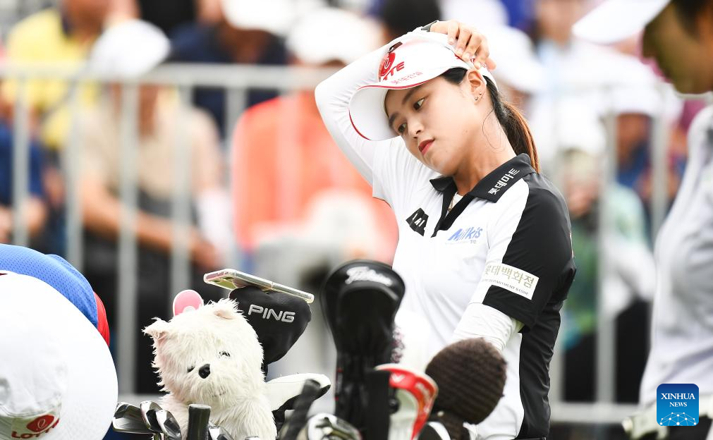 Choi Hye Jin of South Korea watches a shot during the final round of the Blue Bay LPGA golf tournament in Lingshui, south China's Hainan Province, March 10, 2024. (Xinhua/Yang Guanyu)