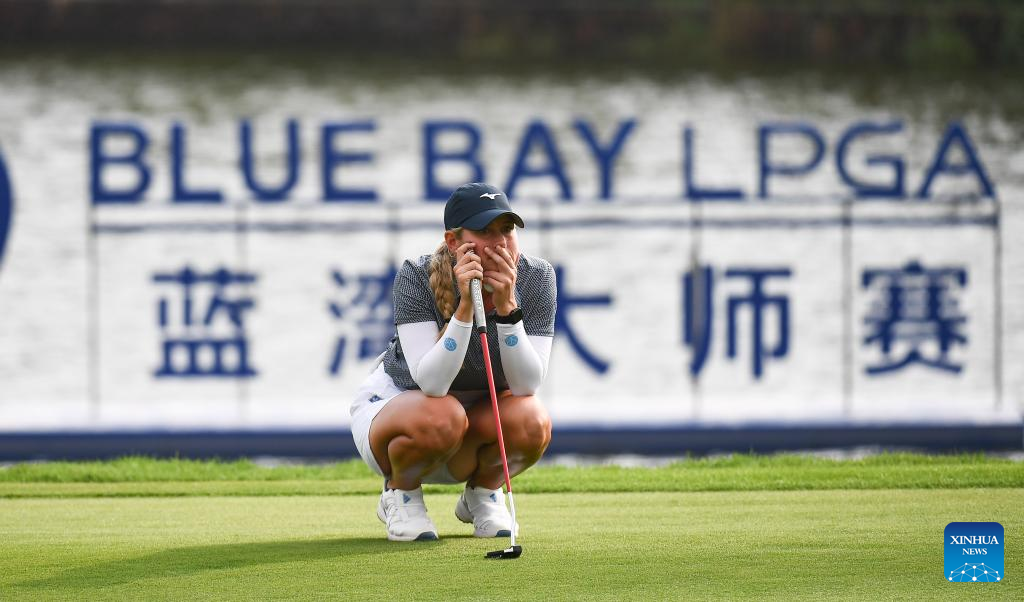 Sarah Schmelzel of the United States lines up a shot during the final round of the Blue Bay LPGA golf tournament in Lingshui, south China's Hainan Province, March 10, 2024. (Xinhua/Yang Guanyu)