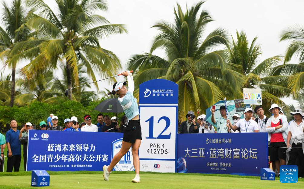 Lydia Ko (L) of New Zealand plays a shot during the final round of the Blue Bay LPGA golf tournament in Lingshui, south China's Hainan Province, March 10, 2024. (Xinhua/Yang Guanyu)