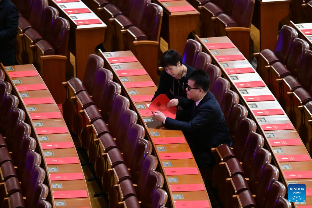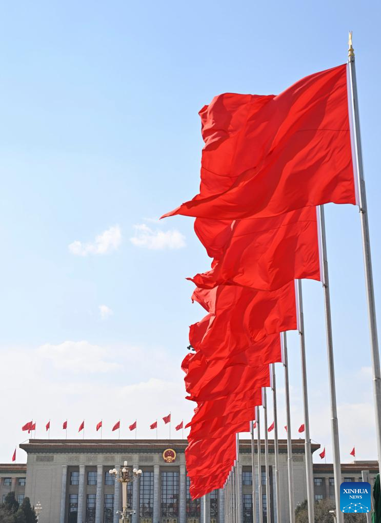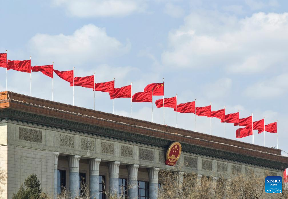 This photo taken on March 11, 2024 shows the Great Hall of the People ahead of the closing meeting of the second session of the 14th National People's Congress (NPC) in Beijing, capital of China. (Xinhua/Liu Xu)