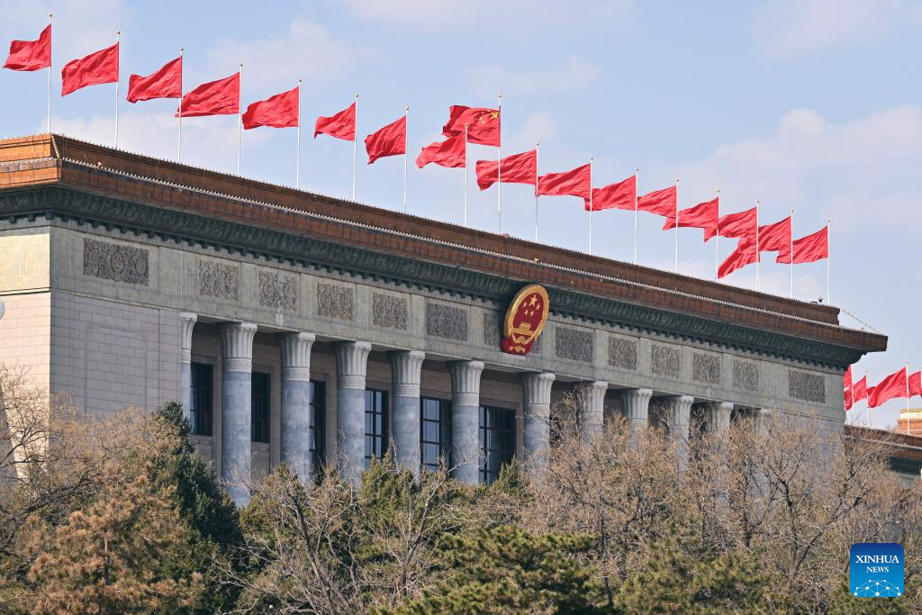 This photo taken on March 11, 2024 shows the Great Hall of the People ahead of the closing meeting of the second session of the 14th National People's Congress (NPC) in Beijing, capital of China. (Xinhua/Mu Yu)