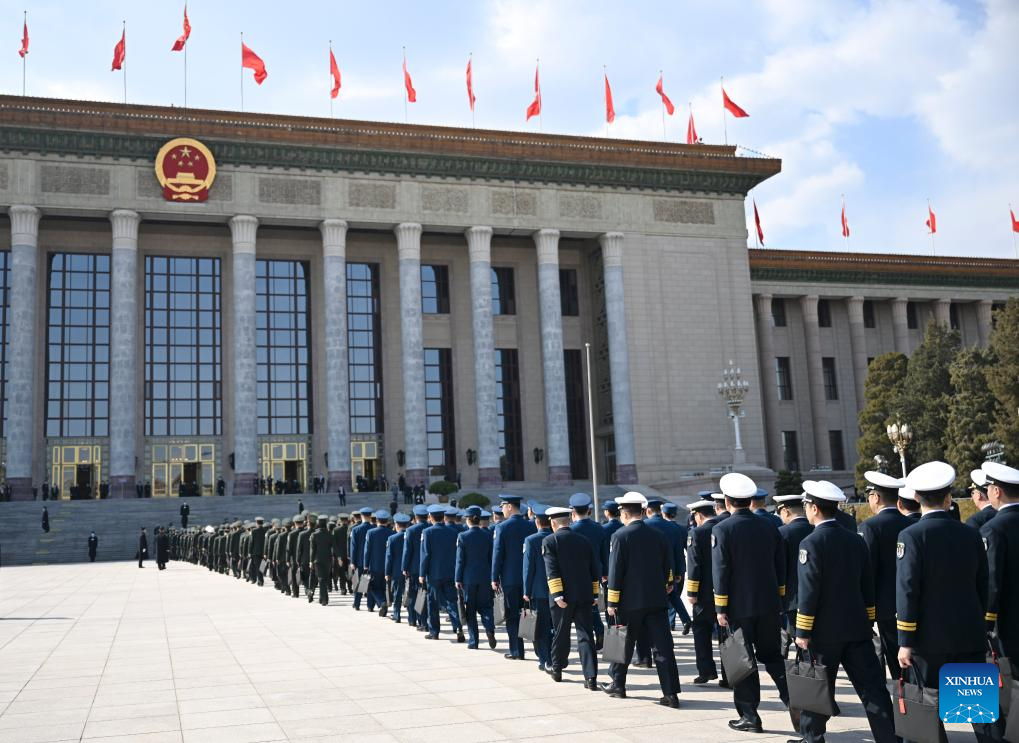 Deputies to the 14th National People's Congress (NPC) walk towards the Great Hall of the People for the closing meeting of the second session of the 14th NPC in Beijing, capital of China, March 11, 2024. (Xinhua/Mu Yu)