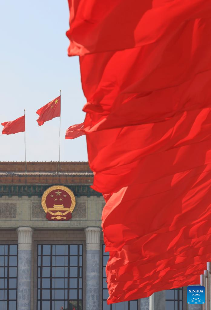 This photo taken on March 11, 2024 shows the Great Hall of the People ahead of the closing meeting of the second session of the 14th National People's Congress (NPC) in Beijing, capital of China. (Xinhua/Song Weiwei)