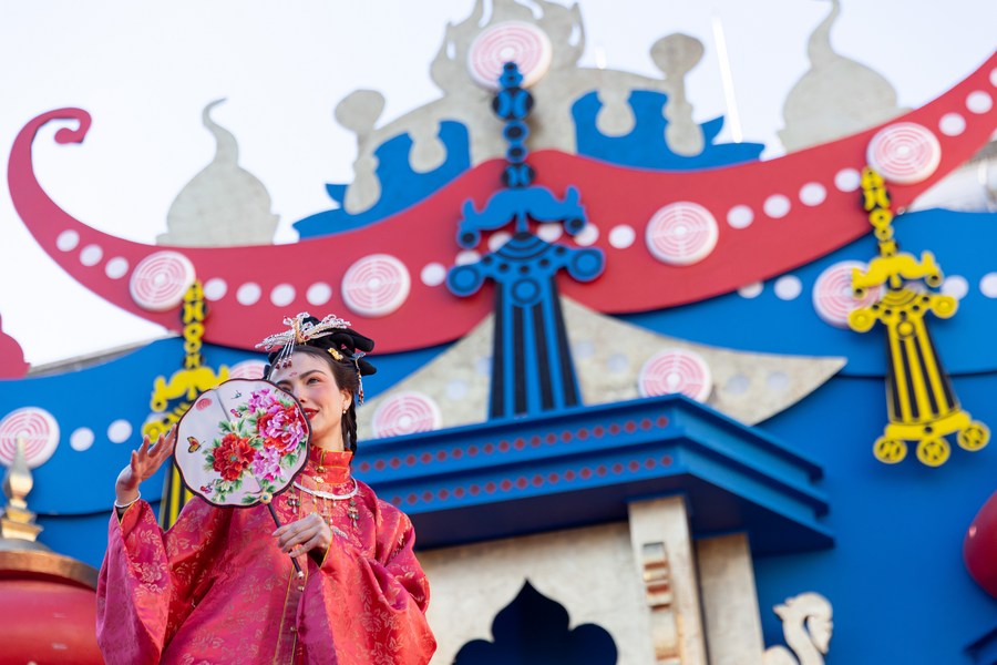 The clothes, directly transported from the eastern Chinese city of Suzhou, were themed after the Han, Tang, and Song dynasties and displayed the traditional silk culture and millennium-long changes of Chinese traditional costumes.
