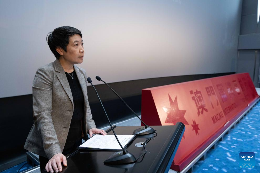 Director of the Cultural Affairs Bureau of the Macao Special Administrative Region government Leong Wai Man addresses the opening ceremony of the Macao International Comedy Festival in south China's Macao, March 11, 2024. The first Macao International Comedy Festival began here on Monday with various comedy films and theater plays from multiple cultures ready for the audience. (Xinhua/Cheong Kam Ka)