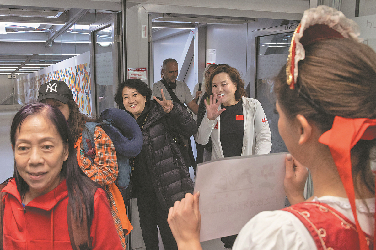 Chinese tourists receive a warm welcome on arrival in Budapest in March 2023. [Photo/Xinhua]