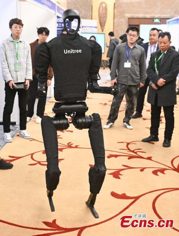 A contestant shows how a humanoid robot works at the Humanoid Robot Competition held in the Beijing Economic-Technological Development Area, March 13, 2024. (Photo: China News Service)