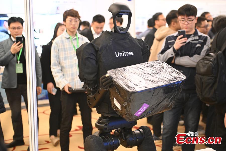 A robot transports items at the Humanoid Robot Competition held in the Beijing Economic-Technological Development Area, March 13, 2024. (Photo: China News Service)