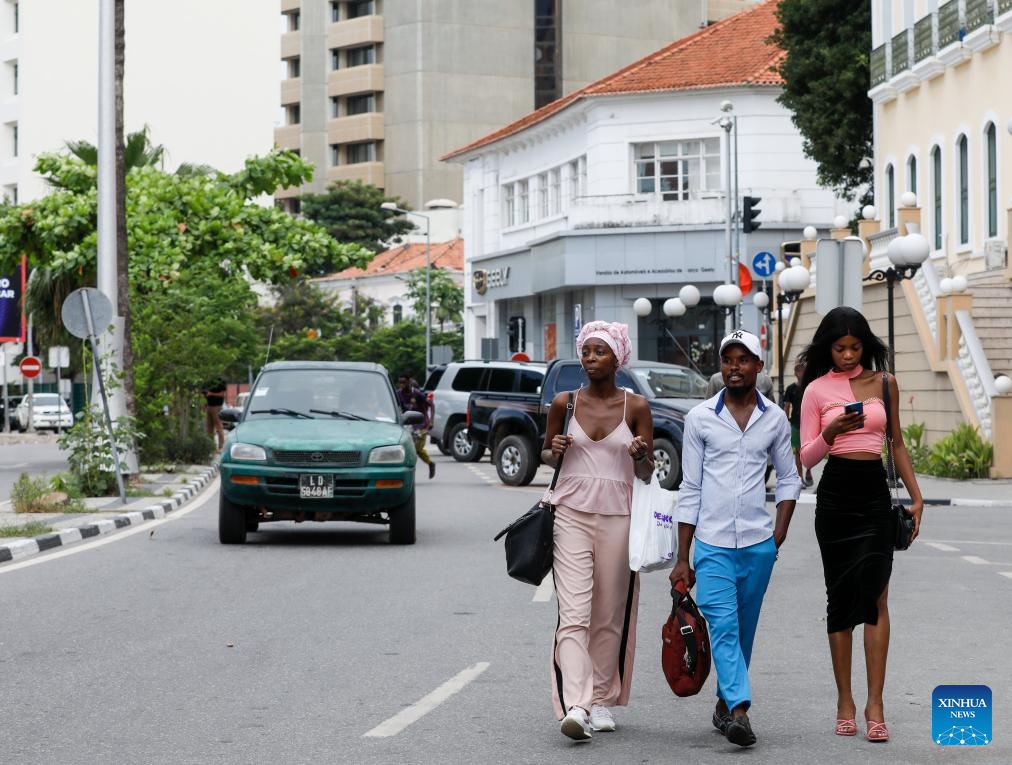People walk on a street in Luanda, capital of Angola, March 9, 2024. (Xinhua/Li Yahui)