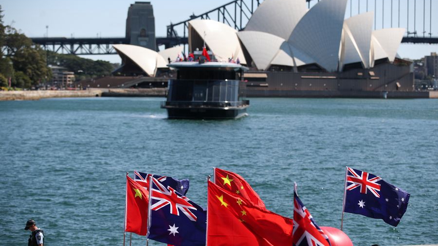The Chinese and Australian national flags in Sydney, Australia. [Photo/Xinhua]