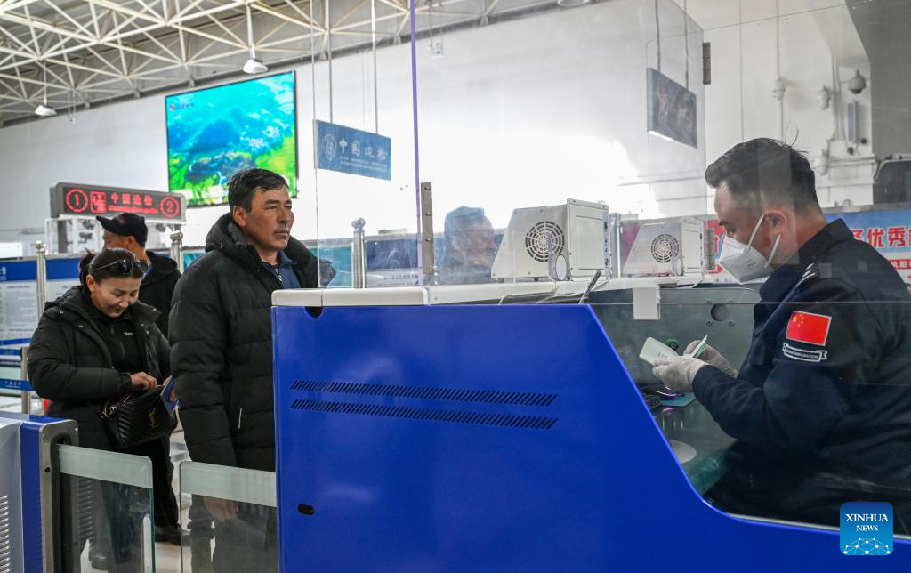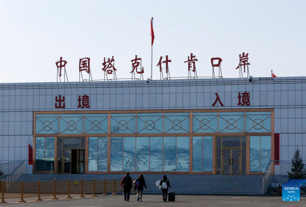 Passengers walk towards the arrival hall at Takixken road port in northwest China's Xinjiang Uygur Autonomous Region, March 13, 2024.?(Xinhua/Jin Bowen)