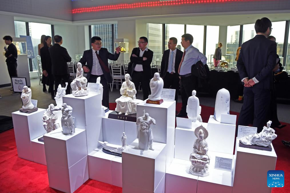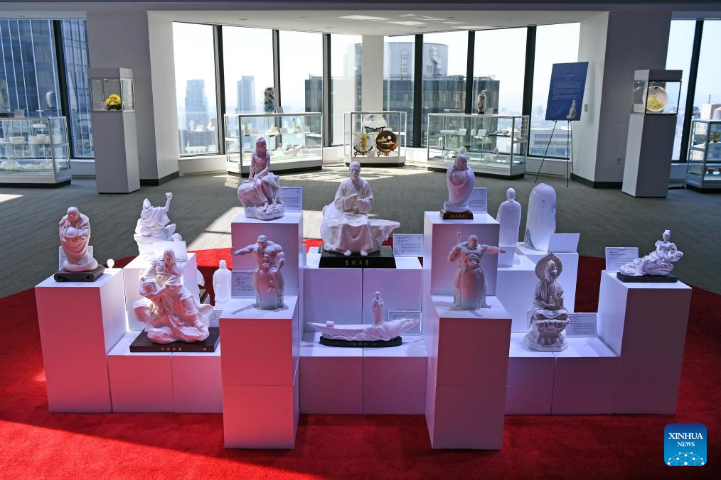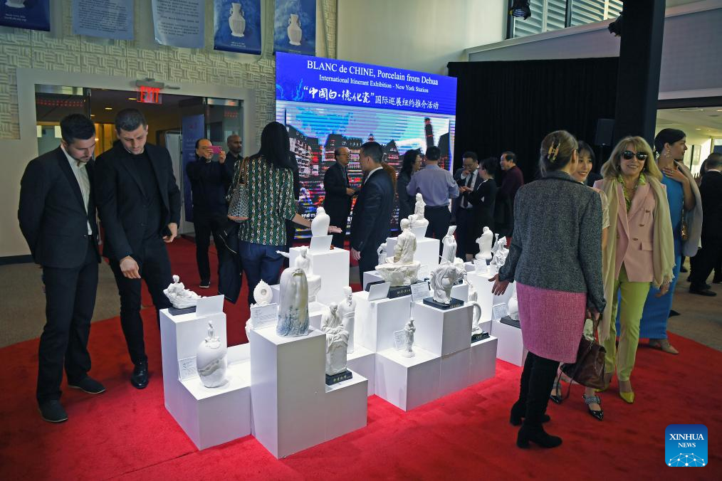 NEW YORK, March 15 (Xinhua) -- A five-day event to showcase white porcelain produced in Dehua County in China's southeastern Fujian province kicked off on Thursday in Midtown, New York City, with 105 masterpieces of Dehua porcelain exhibited.