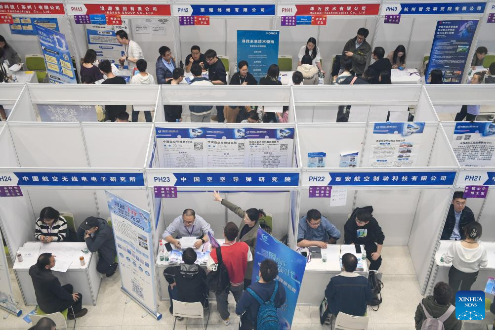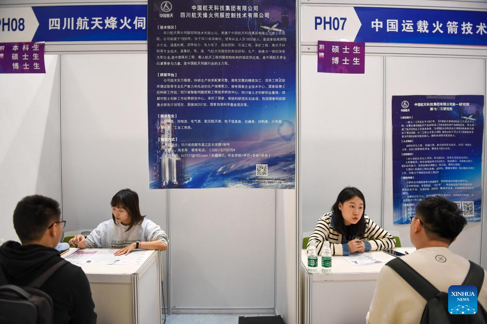 A job fair was held on Friday at Tsinghua University, with about 430 employers offering more than 10,000 jobs to university graduates. (Xinhua/Ju Huanzong)