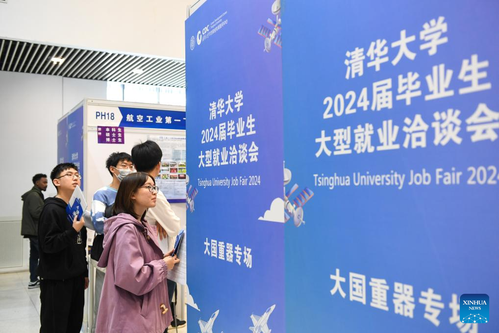Students attend a job fair in Tsinghua University in Beijing, capital of China, March 15, 2024.