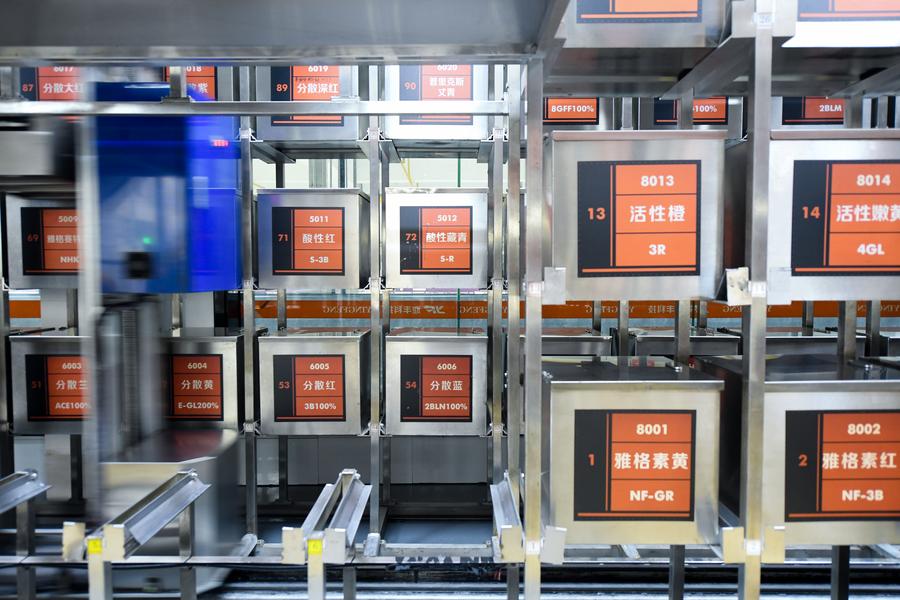 Robots handle dyes on an automated weighing and mixing system at a company in Keqiao District of Shaoxing, east China's Zhejiang Province, March 14, 2024. (Xinhua/Weng Xinyang)