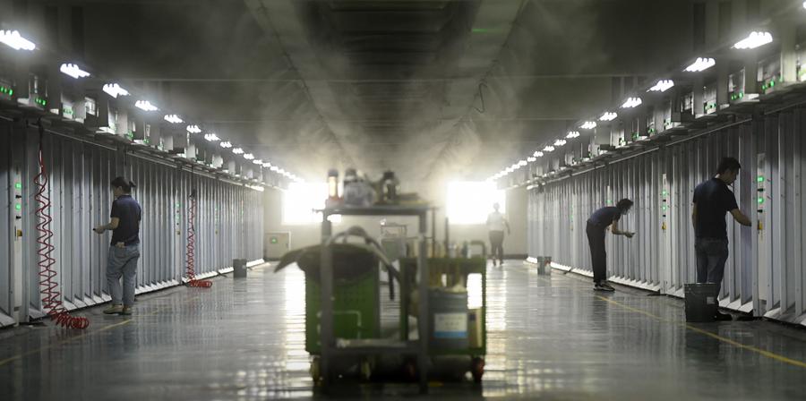 Workers monitor fiber production at a workshop in Keqiao District of Shaoxing, east China's Zhejiang Province, March 14, 2024. (Xinhua/Weng Xinyang)