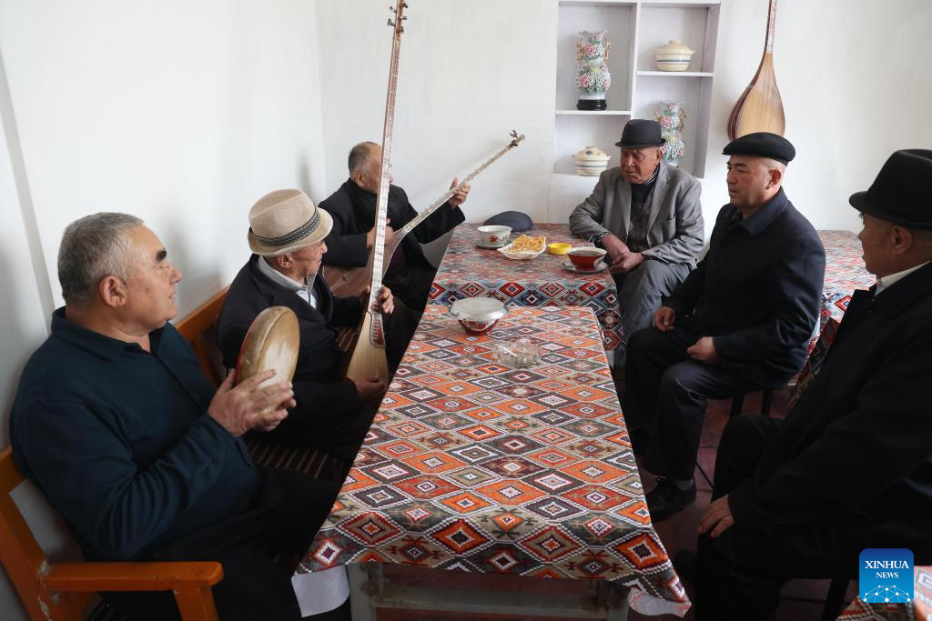 People play music and sing at a tea house in a historic and cultural community in Kuqa City in northwest China's Xinjiang Uygur Autonomous Region, March 15, 2024.(Xinhua/Zhang Yu)
