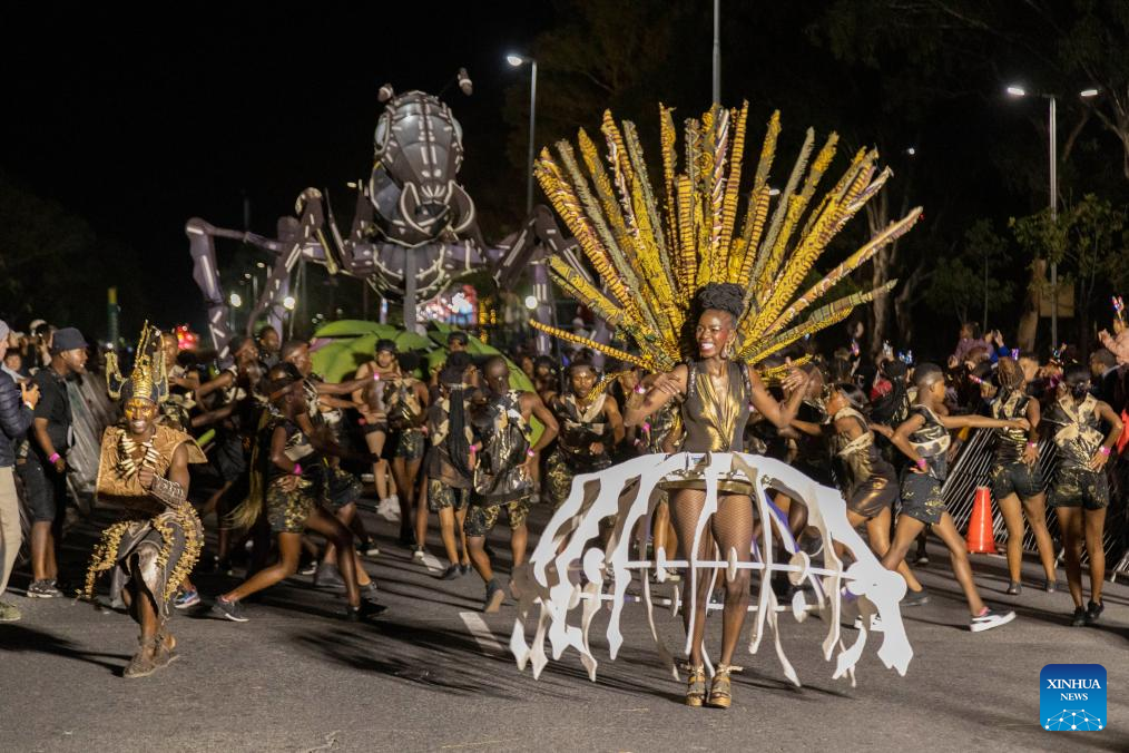Performers parade during Cape Town Carnival 2024 in Cape Town, South Africa, on March 16, 2024. The annual Cape Town Carnival kicked off in the legislative capital of South Africa on Saturday evening with Chinese elements featured at the event. (Xinhua/Wang Lei)