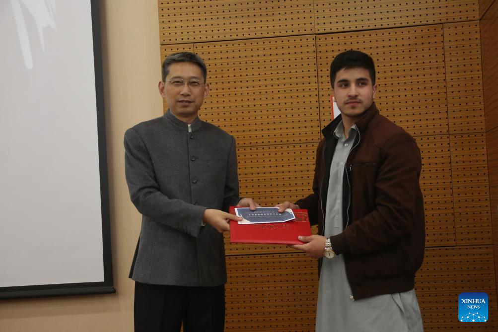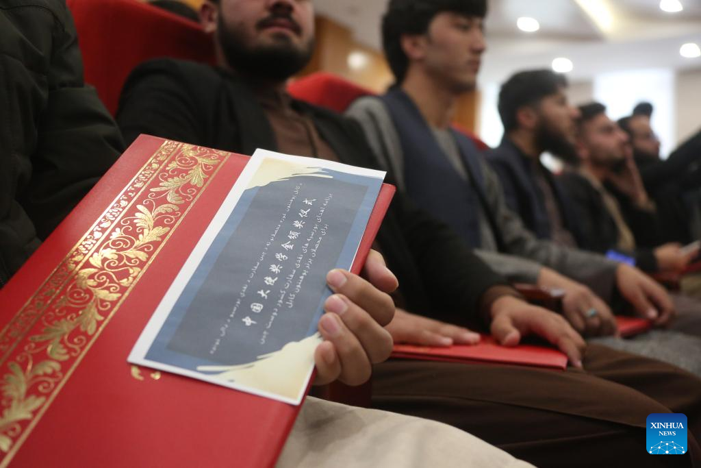KABUL, March 18 (Xinhua) -- A total of 60 students from Kabul University were awarded the "Chinese Ambassador Scholarship," as an awarding ceremony kicked off Monday at Kabul University in Kabul, capital of Afghanistan.