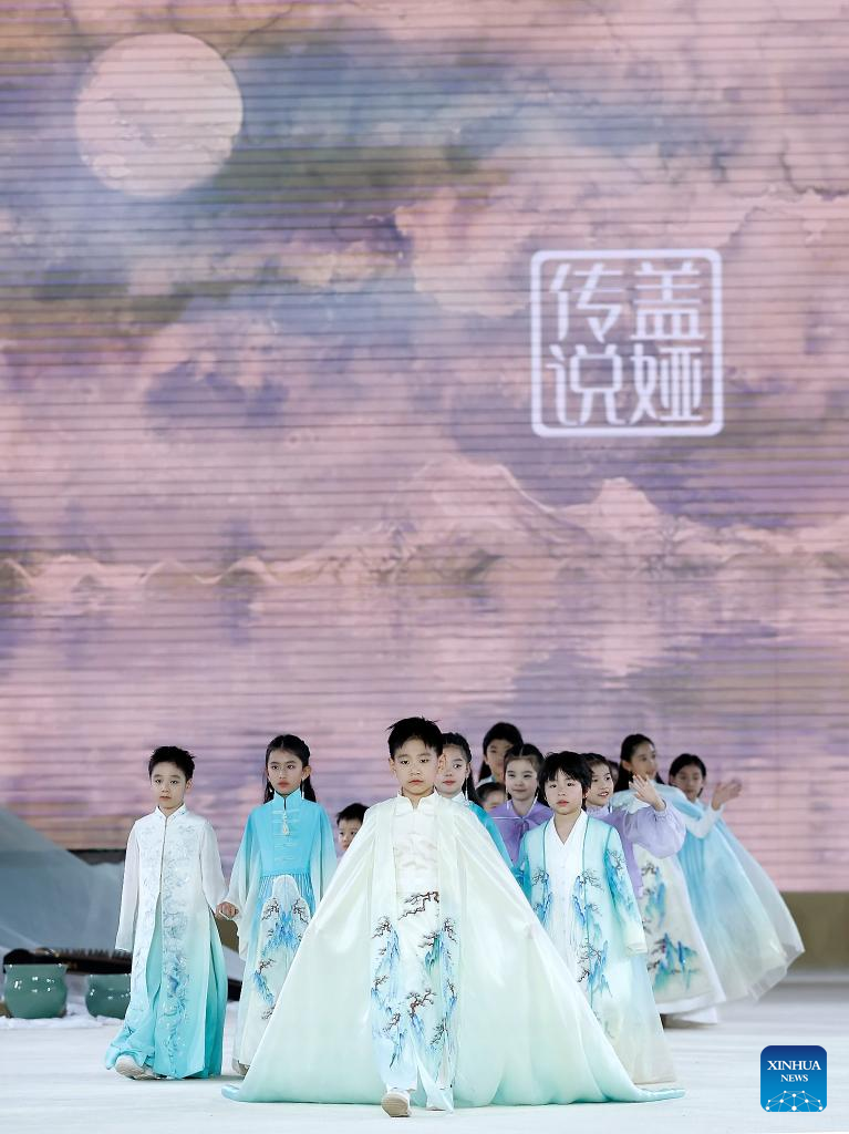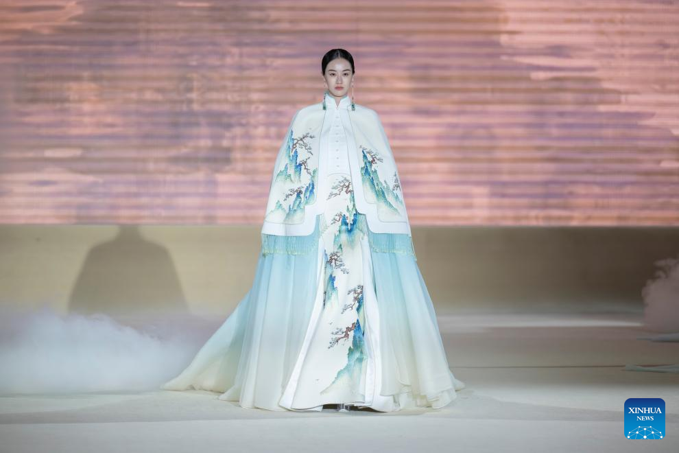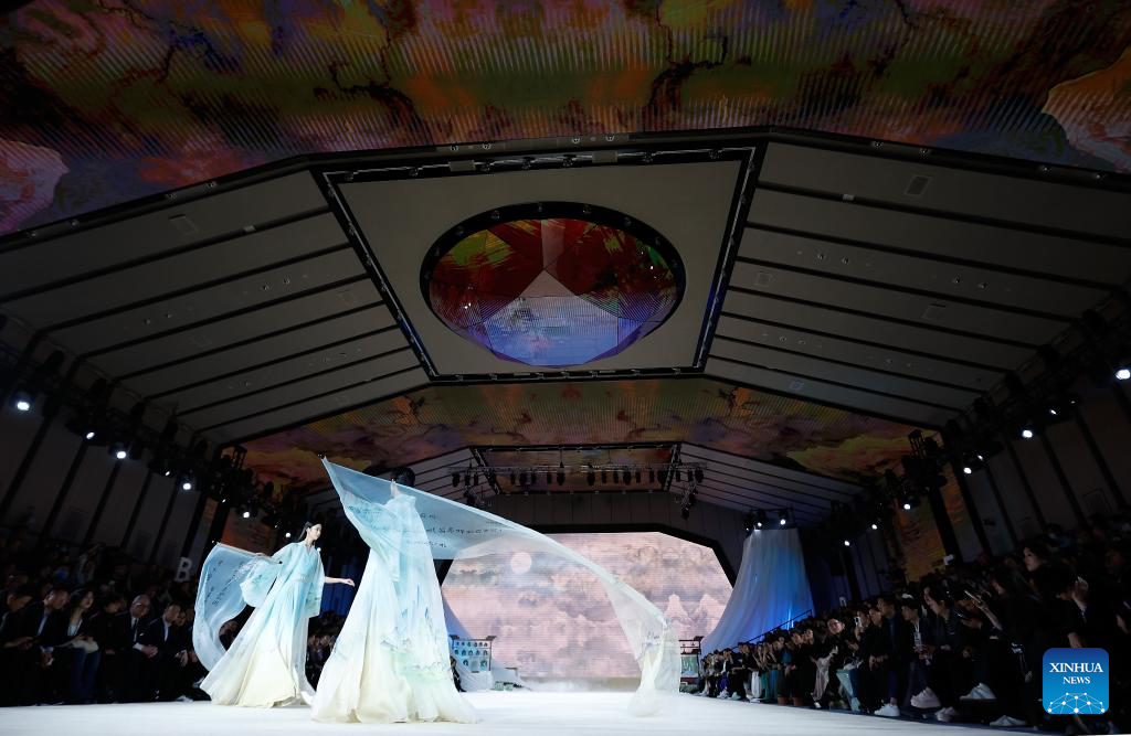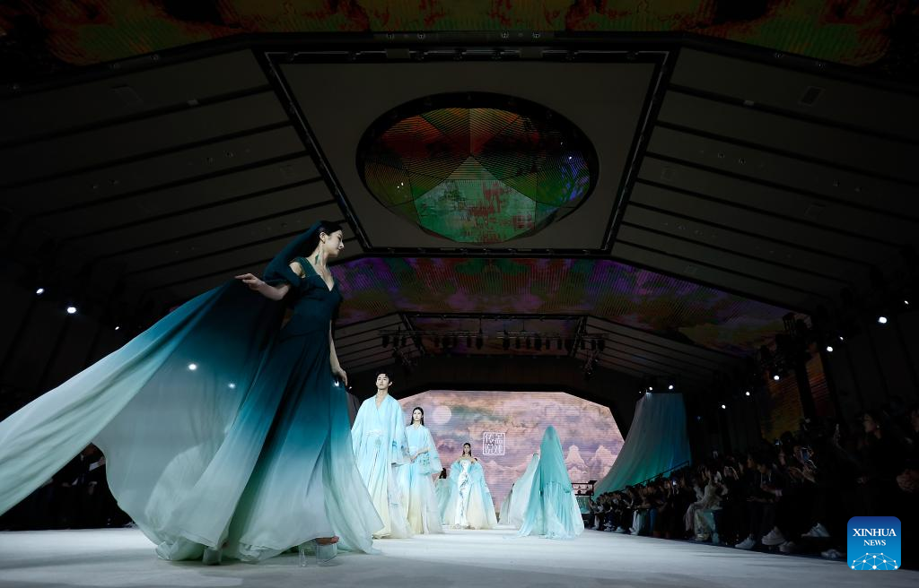 Models walk the catwalk for the Heaven Gaia Autumn/Winter 2024 collection show by Chinese fashion designer Xiong Ying during Beijing Fashion Week AW2024 in Beijing, capital of China, March 18, 2024. The Heaven Gaia show kicked off Beijing Fashion Week AW2024 on Monday. (Xinhua/Wang Lili)