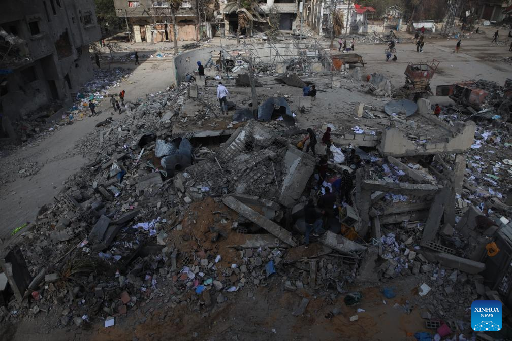 People search among the rubble at Bureij refugee camp in the central Gaza Strip, on March 19, 2024. (Xinhua)