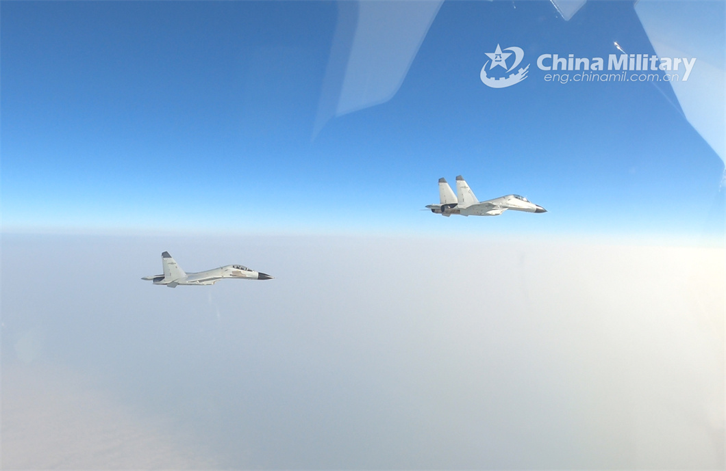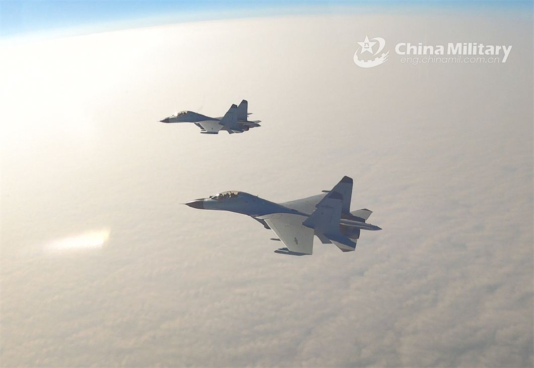 Fighter jets attached to a naval aviation unit under the PLA Southern Theater Command fly in formation during a flight training exercise on March 1, 2024. (eng.chinamil.com.cn/Photo by Fu Jinquan)