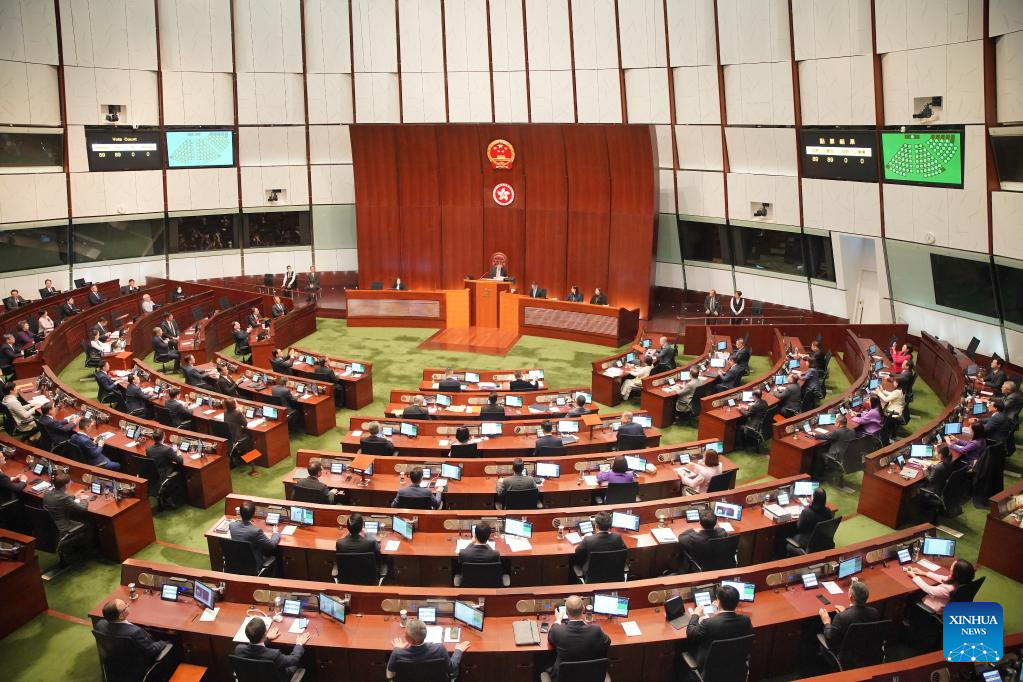 The Legislative Council (LegCo) of the Hong Kong Special Administrative Region (HKSAR) passes the safeguarding national security bill in a unanimous vote during the third reading in Hong Kong, south China, March 19, 2024.