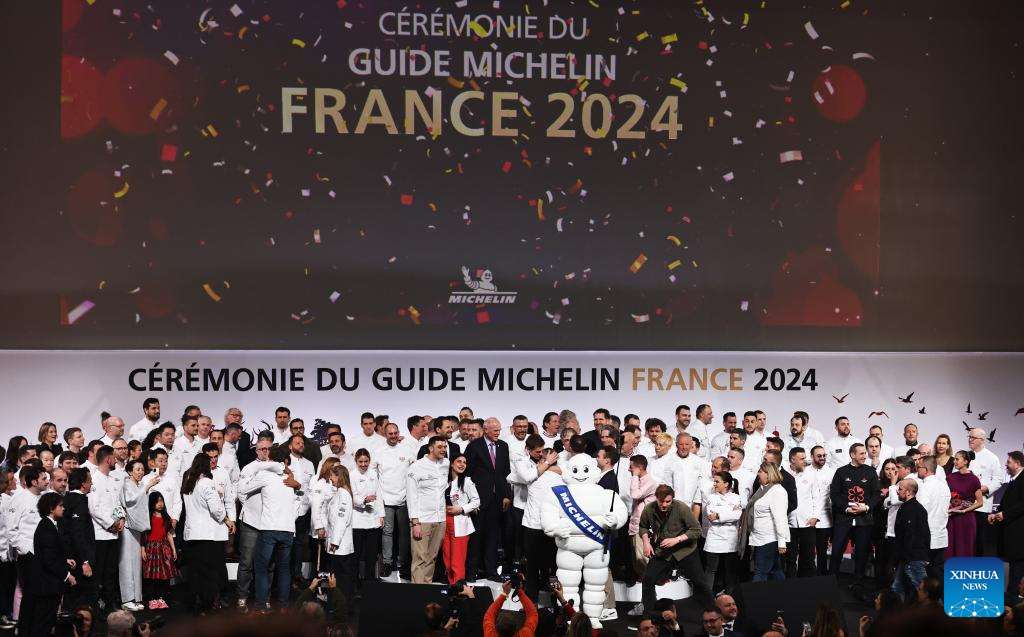 Chefs attend the Michelin Guide for France 2024 awards ceremony in Tours, France, March 18, 2024. The Michelin Guide launched its 2024 France edition on Monday in Tours. (Xinhua/Gao Jing)