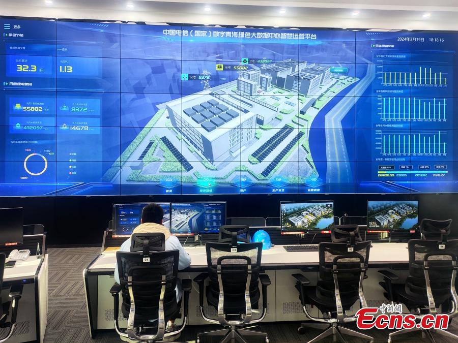 Staff members work at the China Telecom (National) Digital Qinghai Green Big Data Center, China's first zero-carbon data center in Haidong city, northwest China's Qinghai Province, March 19, 2024. (Photo: China News Service/Li Jun)