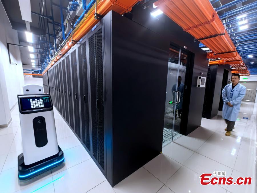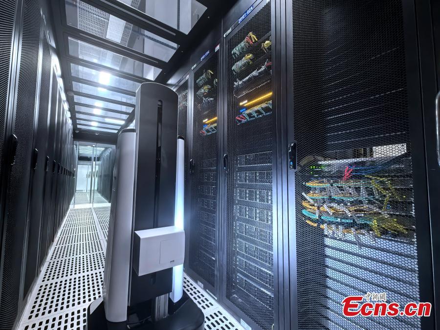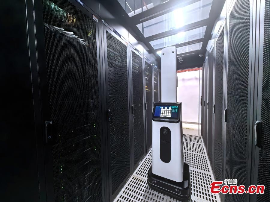 A robot inspects servers at the China Telecom (National) Digital Qinghai Green Big Data Center, China's first zero-carbon data center in Haidong City, northwest China's Qinghai Province, March 19, 2024. (Photo: China News Service/Li Jun)