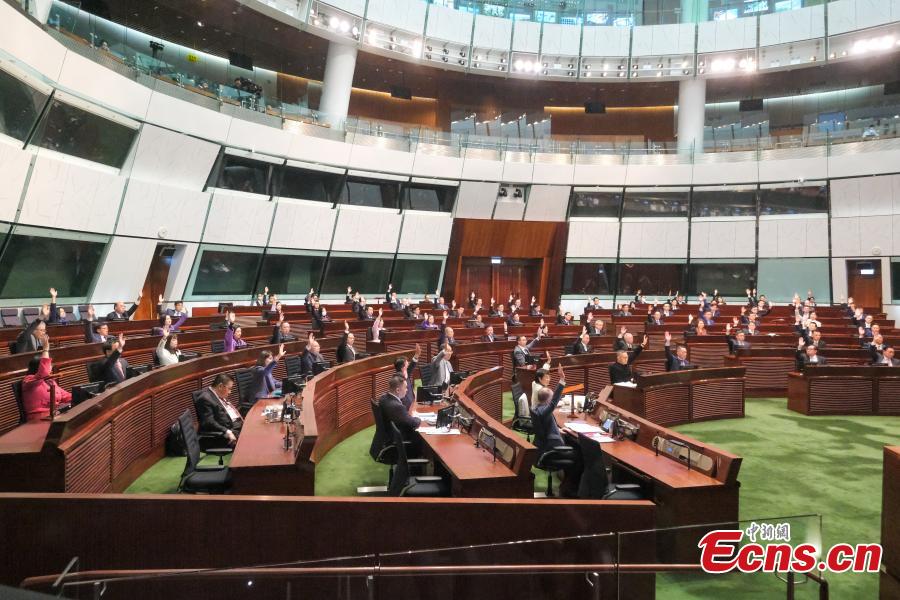 The Legislative Council (LegCo) of the Hong Kong Special Administrative Region (HKSAR) passes the safeguarding national security bill in a unanimous vote during the third reading in Hong Kong, March 19, 2024. (Photo: China News Service/Chen Yongnuo)