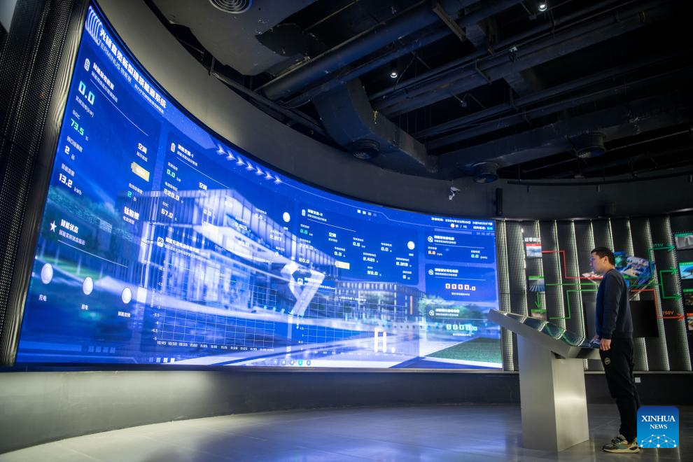 A staff member works at an energy station of the start-up area of the Sino-French Wuhan Ecological Demonstration City in Wuhan, central China's Hubei Province, March 19, 2024. This year marks the 10th anniversary since China and France signed the agreement to build the Sino-French Wuhan Ecological Demonstration City. The eco city, covering an area of 39 square kilometers, has integrated Chinese and French ecological urban construction concepts and is rising as a popular region for residents and companies. (Xinhua/Hu Jingwen)