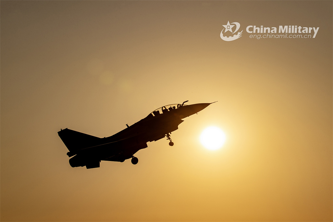 A J-10 fighter jet attached to an aviation brigade with the air force under the PLA Southern Theater Command soars into the air during a flight training exercise in early March, 2024. (eng.chinamil.com.cn/Photo by Wang Guoyun)