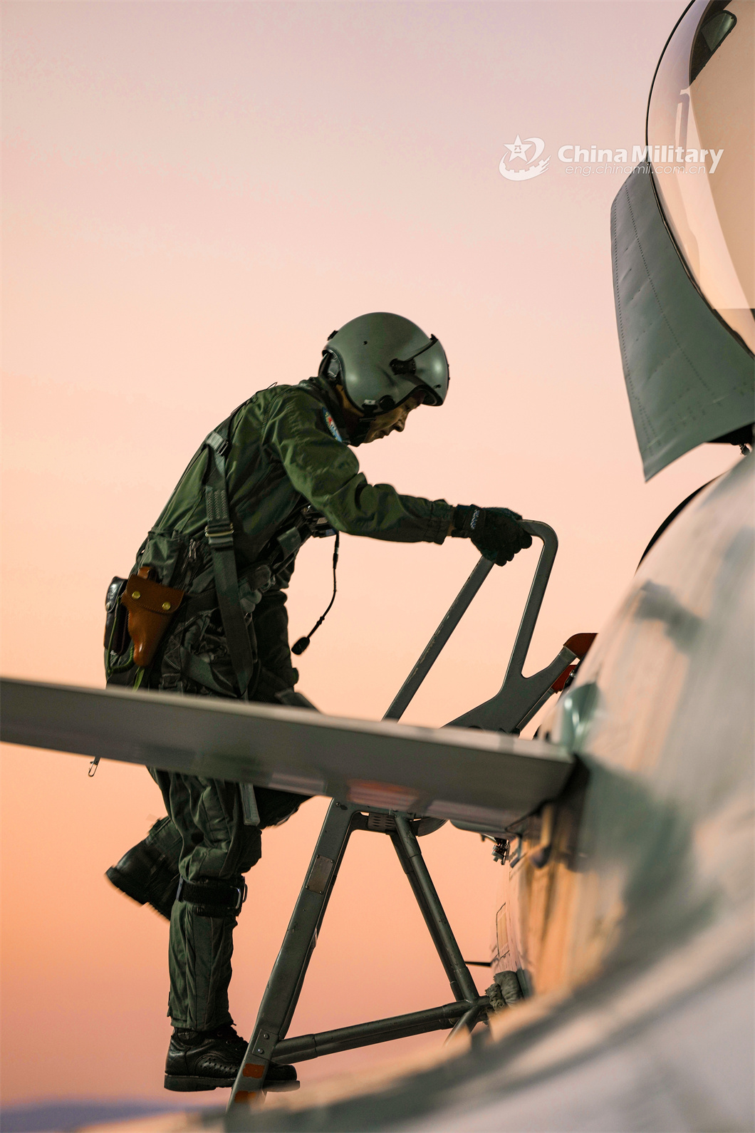 A pilot assigned to an aviation brigade with the air force under the PLA Southern Theater Command climbs into the cockpit of his J-10 fighter jet prior to a flight training exercise in early March, 2024. (eng.chinamil.com.cn/Photo by Wang Guoyun)