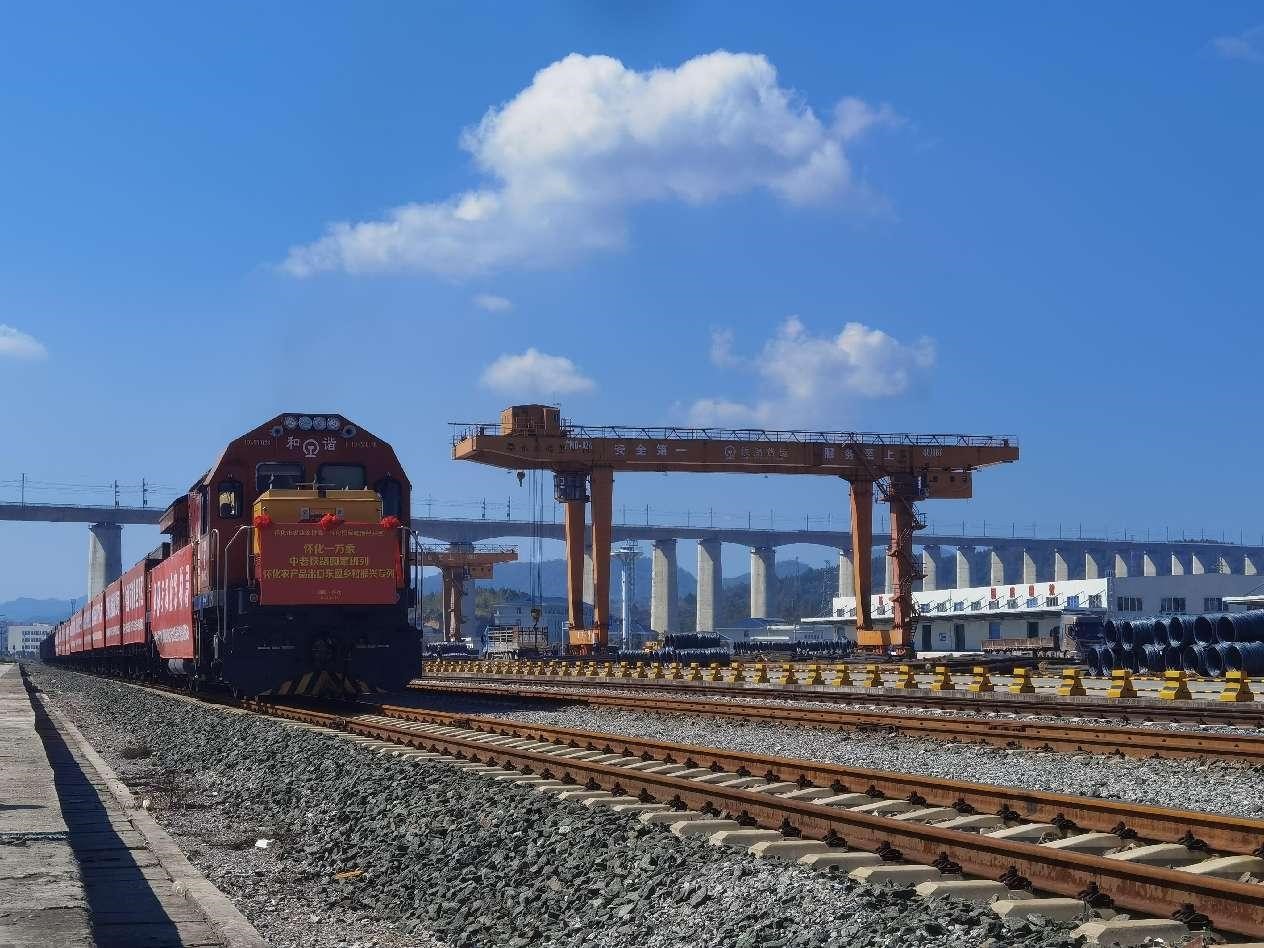 A fully loaded train departs from Huaihua, central China's Hunan province, heading towards Vientiane, Laos along the China-Laos Railway, Oct. 30, 2023. (People's Daily Online/Tian Min)