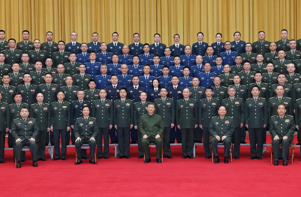 Chinese President Xi Jinping, also general secretary of the Communist Party of China Central Committee and chairman of the Central Military Commission, meets with military officers from troops stationed in Changsha, central China's Hunan Province, March 20, 2024. Xi made an inspection tour to Hunan Province from Monday to Thursday. (Xinhua/Li Gang)