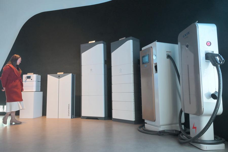 Products of Contemporary Nebula Technology Energy Co., Ltd. are on display at an exhibition hall of the company in Fuzhou, southeast China's Fujian Province, March 13, 2024. (Xinhua/Lin Shanchuan)
