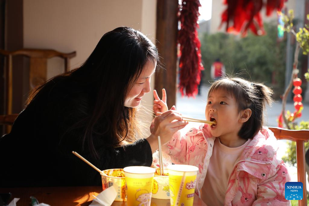 Tourists taste local snacks at the ancient city of Tianshui in Qinzhou District of Tianshui City, northwest China's Gansu Province, March 20, 2024. At dawn, the bustling snack streets of Tianshui, a city in northwest China's Gansu Province, were already teeming with activities, with visitors eager to taste the local specialty, malatang, literally meaning a numbingly spicy hotpot. (Xinhua/Ma Xiping)
